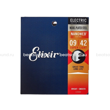 ПроизводительELIXIRВес (брутто) кг.0.1Длина (м.)0.12Ширина (м.)0.12Высота (м.)0.01Количество струн6Калибр9-42НатяжениеСлабоеМатериал обмоткиНикель -