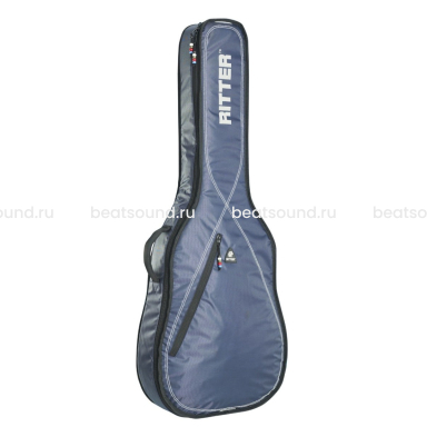 защитное мягкое уплотнение 10мм. Материал: 100% полиэстр, карман А4, ручки, рюкзачные лямки, надпись RITTER. Встроенная доп.защита в районе порожка и головки грифа. Цвет: синий с белой прострочкой