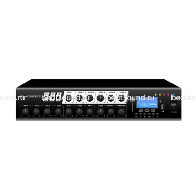 Шестизонный микшер-усилитель, 120 Вт, выходы 100В/4-16Ом, встроенный USB/SD mp3-проигрыватель, FM-радио, Bluetooth. Три микрофонных входа на ComboXLR с фантомным питанием, приоритетный вход 1, два линейных стереовхода на RCA, один линейный стереовыход на RCA, звуковые сигналы оповещения, 12/24 вход аварийного оповещения. Читать подробнее