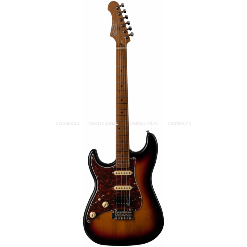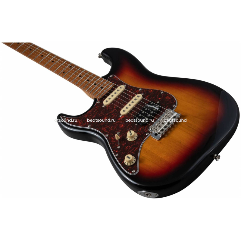 Гриф и накладка на гриф выполнены из печеного клена (roasted maple). При такой обработке поры дерева максимально сжимаются и в процессе использования вода уже не будет выходить, ваша накладка не сожмется и лады не повылазят вне зависимости от влажности и смены температуры. Плюс такое дерево выглядит очень красиво.