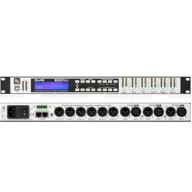 Dx46 обеспечивает полную обработку входного сигнала: графический эквалайзер, параметрический эквалайзер, задержки. А также полный оптимизированный FIR-DRIVE выходного каскада, в том числе кроссовер, эквалайзер и динамическая обработка. Он даже предоставляет специализированный ряд эквалайзеров и ряд задержек на каждом выходе. Конфигурирование и настройка никогда не была такой простой!