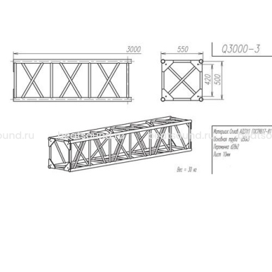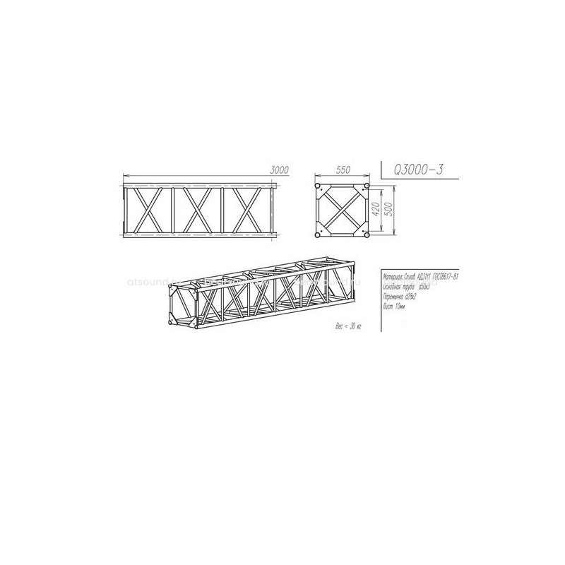 Прямой модуль квадратной конфигурации длиной 3000мм, 550x550мм, d50x3 \ d28x2мм. Основная труба сплав АД31т1 Читать подробнее