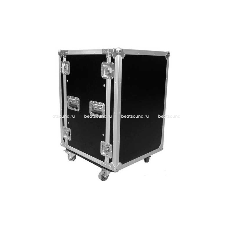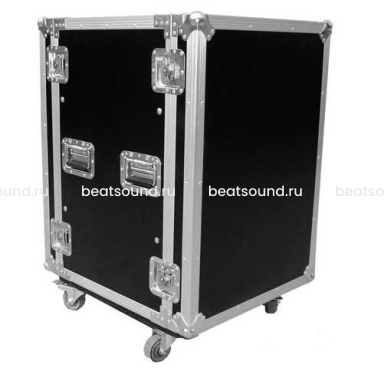 Рэковый кейс 16U, глубина 550мм, DIN рейка с 2-х сторон, ламинированная фанера 9мм, с колесами d100мм, 2-а колеса с тормозом