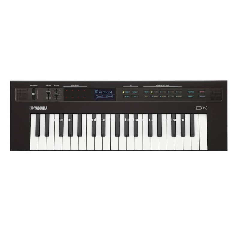 YAMAHA REFACE DX – это компактная модель синтезатора FM-синтеза из линейки Reface от знаменитого японского производителя. Модель отличается удобством и простотой управления, прекрасным звуком и впечатляющей динамикой. 37 мини-клавиш высокого качества, которые работают по технологии FS, применяемой также во флагманской модели Yamaha Motif XF, дают быстрый отклик и чрезвычайно естественные ощущения при игре. FM тон-генератор, используемый в этой модели, предусматривает 4 оператора с возможностью плавного регулирования, 12 различных алгоритмов и 32 запоминаемых тембра, которые легко сохранять и вызывать из памяти. 2 программируемых блока эффектов предоставляют 7 разных типов эффектов каждый. Модель оснащена высококачественной встроенной акустической системой, которая позволяет добиться потрясающей глубины и насыщенности звука. Повторитель фраз Phrase Looper позволяет записать свою музыку и затем проигрывать ее. Модель чрезвычайно мобильна: вес синтезатора YAMAHA REFACE DX – менее 2 кг, и он может работать без подключения к сети электропитания до 5 часов, используя батарейки типа АА. Широкие возможности коммутации предусматривают подключение USB, MIDI, два линейных выхода, выход на наушники, а также вход AUX.
