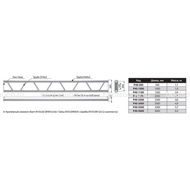 IMLIGHT P40-2500 Прямой модуль плоской конфигурации длиной 2500мм, d40х2 \ d16х2мм. Основная труба сплав АД31т1 (IM-001-04461)